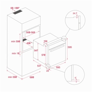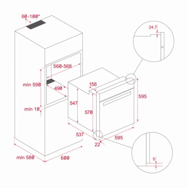 • Dimensiones del hueco de instalación(mm):595 x 595 x 537 mm