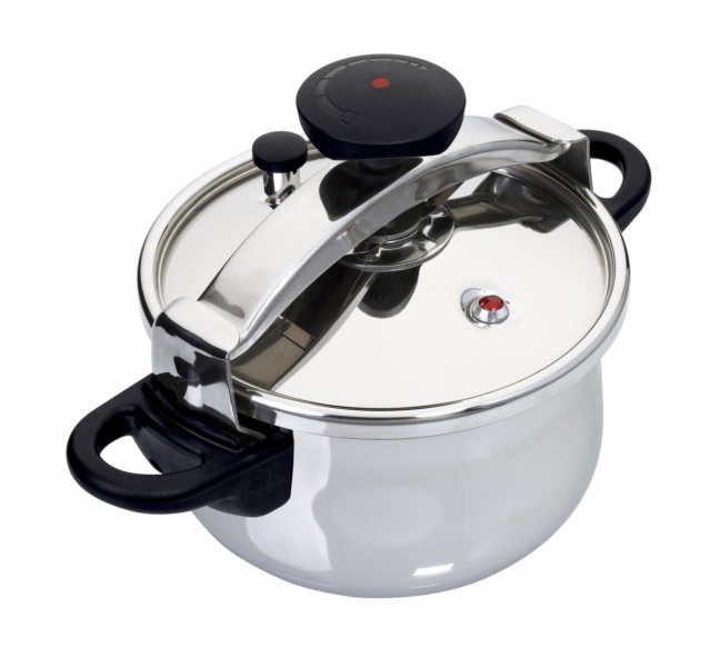 • La olla a presión "clásica" modelo opc de jata está fabricada en acero inoxidable y tiene un sistema de cierre progresivo mediante asa giratoria.