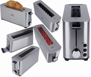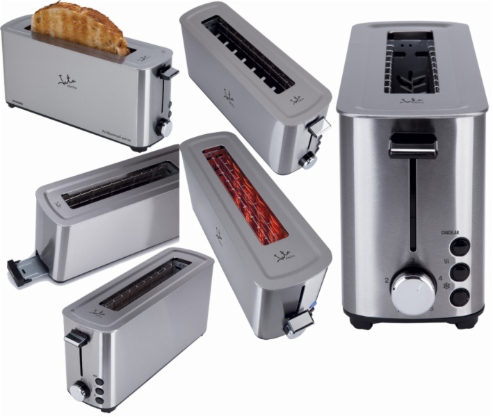 • El tostador tt1043 profesional series tiene cuerpo en acero inoxidable y selector electrónico de tostado, para tostar o descongelar todo tipo de pan