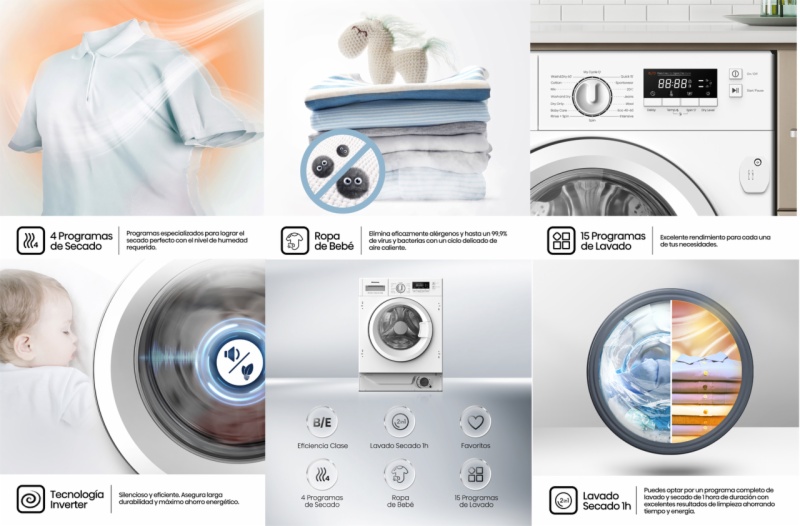 • Clase eficiencia energética (lavado & secado): e