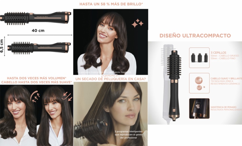 • El cepillo perfecto para unos resultados personalizados: cepillo de aire caliente giratorio con tres cabezales especìficos que han sido diseñados en colaboración con profesionales de la peluquerìa para adaptarse a tu cabello y tus necesidades