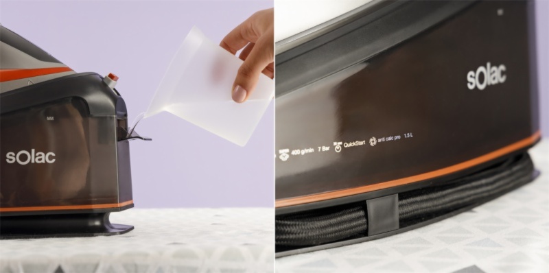 • El centro de planchado optima center 3010 de solac ofrece resultados profesionales con 3000 w, 7 bares de presión y golpe de vapor de 400 g/min. su tecnologìa smart adapta el vapor a todos los tejidos con una sola posición. cuenta con depósito de 1,5 l recargable en uso, suela cerámica bi-flow, pantalla digital, apagado automático y sistemas antical, antigoteo y de autolimpieza. cómodo, seguro y potente. ideal para un planchado eficiente y sin complicaciones.