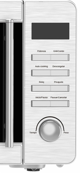 • Estética inox con puerta inox y abertura con tirador. cavidad esmaltada en gris con iluminación led y plato giratorio de cristal. sistema de control eléctronico con display led y temporizador digital. ofrece 5 niveles de potencia, grill y distintas funciones para obtener el mayor rendimiento y facilitar el proceso de cocción.