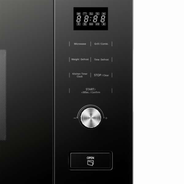 • Estética de cristal negro con puerta de cristal negro y abertura con botón. cavidad de acero inoxidable con iluminación led y plato giratorio de cristal. sistema de control eléctronico con display led y temporizador digital. ofrece 5 niveles de potencia, grill, 2 opciones de cocina combinada y distintas funciones para obtener el mayor rendimiento y facilitar el proceso de cocción.